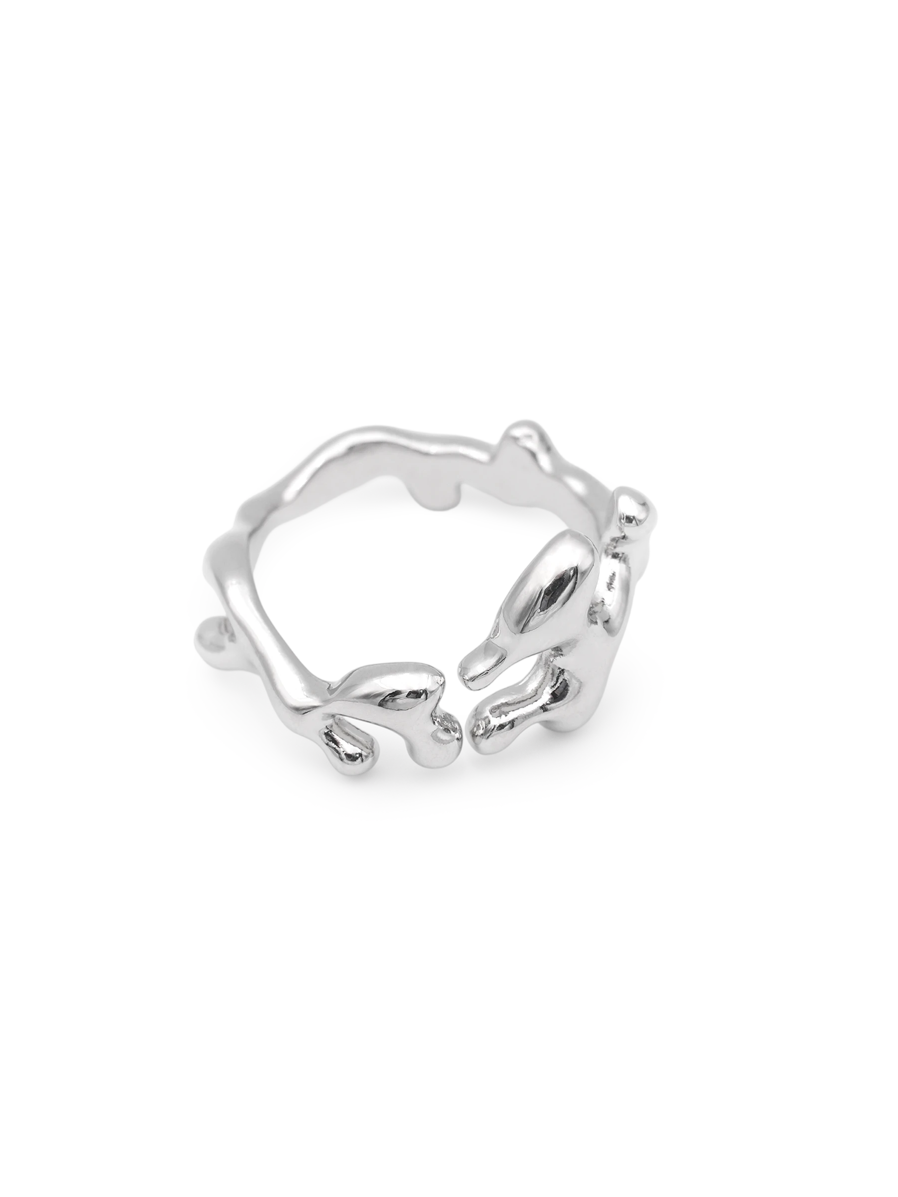 The concept draws from the fleeting form of molten metal as it begins to solidify—irregular, asymmetrical, yet inherently beautiful. The ring resembles a spontaneous line of growth, with each curve capturing an unpolished, instinctive energy.