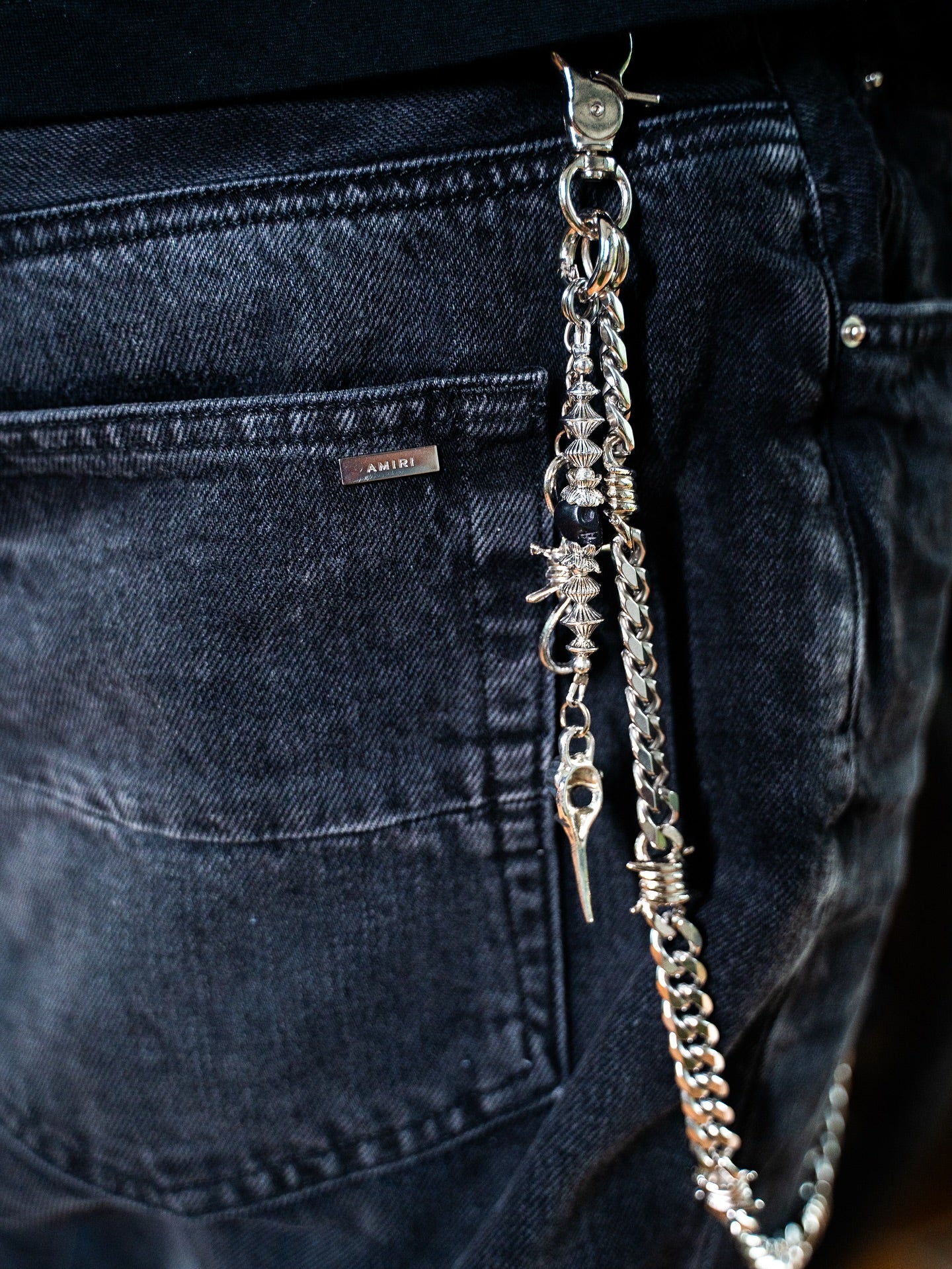 A heavy Cuban chain interwoven with barbed loops evokes barriers and alert.